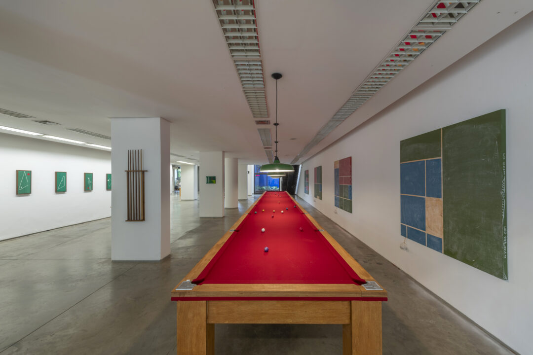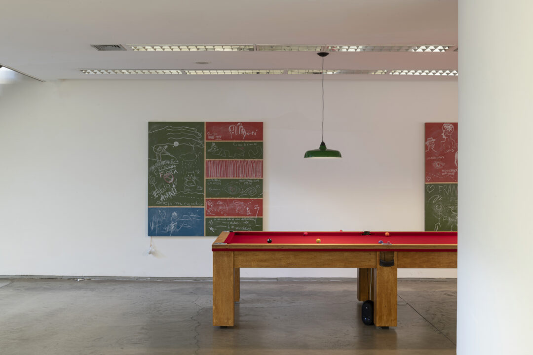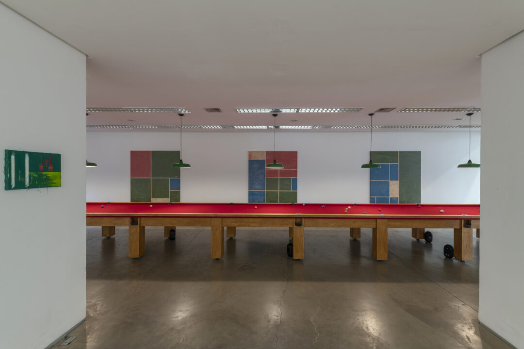 As múltiplas narrativas que Froiid tece ao conceber esta exposição – que não é apenas um espaço físico, mas igualmente emocional, mental, imaginário – encontram-se profundamente enraizadas na cultural popular brasileira. Em conjunto, elas constroem um espaço para o convívio e o lazer, para o jogo e para a malandragem. O artista invoca um universo maioritariamente masculino, onde coexistem as apostas e o vício, o vagar e a competição, a sorte e o azar. Entramos em Mundaréu e somos instantaneamente implicadas/os através dos convites abertos ao jogo. Entramos em Mundaréu e somos envolvidas/os por uma amálgama de sons ecléticos. Entramos em Mundaréu e assim fazemos parte de uma homenagem afetuosa aos espaços de partilha da classe trabalhadora. Com um aceno ao escritor, ator, jornalista e dramaturgo Plínio Marcos (1935-1999) e as suas Histórias das quebradas do mundaréu (1973), Froiid conecta futebol e sinuca, política e inteligência artificial, ícones e ditados populares.