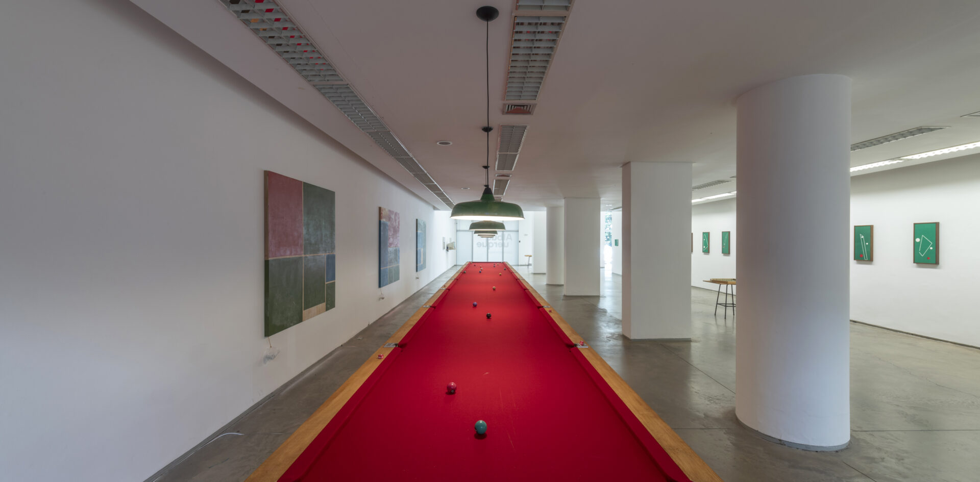 À entrada estão expostas em fila 20 bandeiras com varas de bambu de 5 metros de altura, constituindo Sapo de Fora não ronca (2022) que inclui também uma caixa de som colocada na rua, difundindo gravações de jogos de futebol e cantos e tambores de torcidas organizadas. As cores e padrões das bandeiras correspondem a emblemas de clubes de futebol locais. Três jogos de tabuleiro estão espalhados na área de entrada, prontos para serem usados. Estes Petelecos são derivados de campos de futebol e têm títulos como Cabeça de área, Zona do Agrião, ou Ai o bambu quebrou no meio, os quais aludem às formas recortadas dos tabuleiros e às assimetrias que favorecem uma das partes. Duas impressões fotográficas multiplicam as jogadas La mano de Dios (Maradona, Copa do Mundo, 1986) e Drible da Vaca (Pelé, Copa do Mundo, 1970) criando padrões geométricos em preto-e-branco, acompanhados dos vídeos das respetivas jogadas em loop. O histórico gol de Maradona pela Argentina que ele denominou como uma vingança simbólica contra a Inglaterra devido à Guerra das Malvinas (1982), e o histórico não-gol de Pelé pelo Brasil, apelidado o gol que não foi, mas deveria ter sido. Estes dois ídolos ocupam espaços legendários, míticos, que apelam ao imaginário coletivo do povo.
