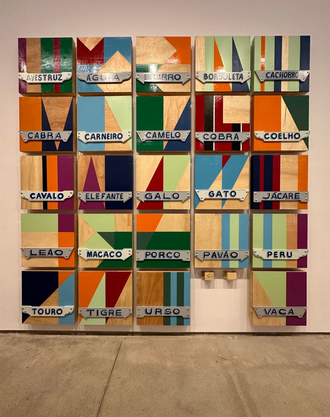 A instalação conta com 25 peças baseadas no tradicional jogo brasileiro. Diariamente, a partir do sorteio Alvorada, uma peça correspondente ao animal da cabeça é substituída no cavalete, sendo assim, a expografia do trabalho é modificada constantemente pelo resultado do Jogo do Bicho.