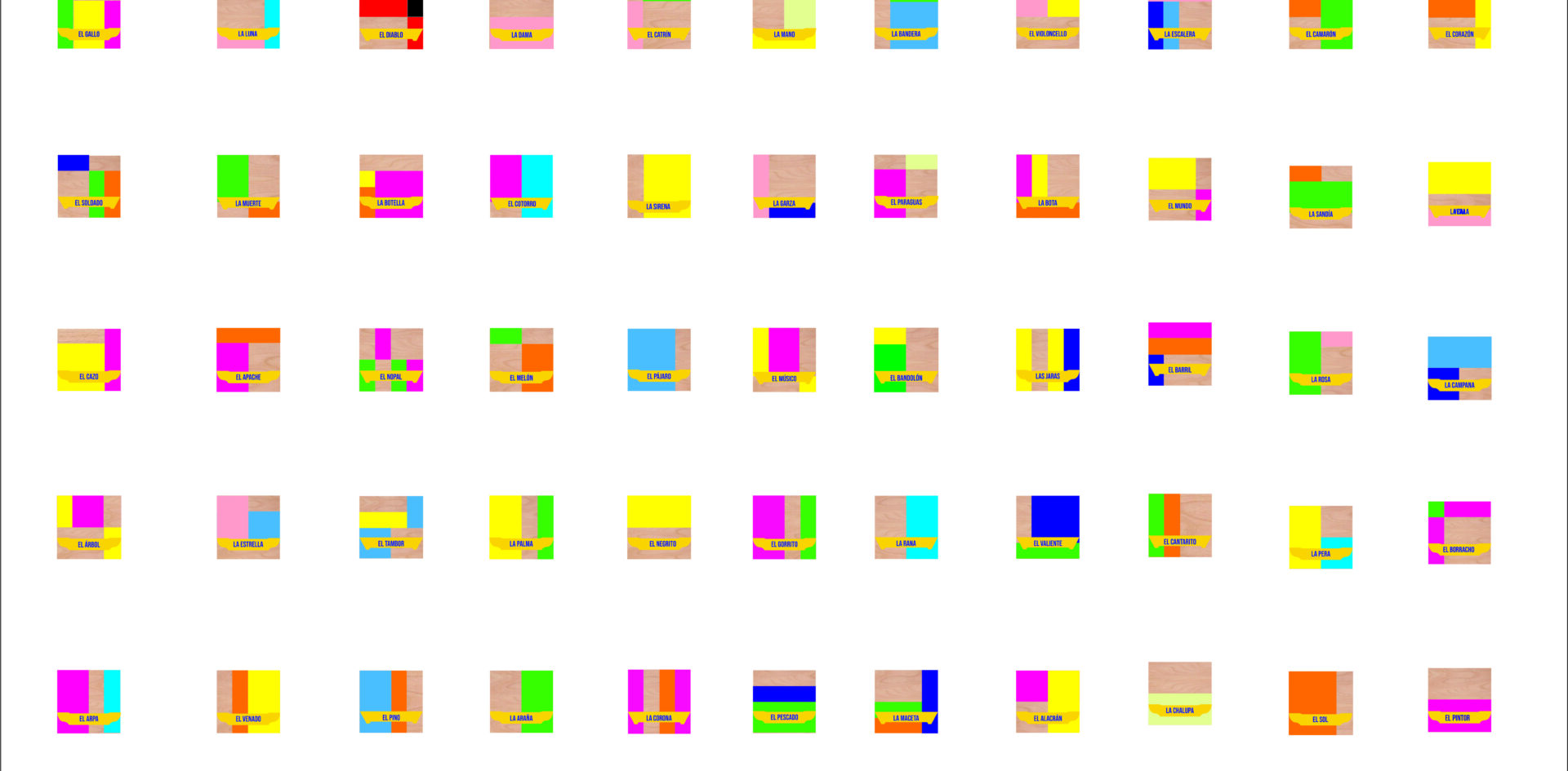 O projeto consiste em 54 pinturas, cada uma correspondendo a uma carta do jogo, criadas a partir de quadros de madeira pintados com tinta esmalte sintético. Os nomes das cartas são grafados com tipografias vernaculares, evocando a tradição visual dos letreiros de carroceiros de caminhão, prática comum em diversos países da América Latina. Dispostas de forma modular, as pinturas ocupam o espaço expositivo como uma grande composição em movimento. Elas se articulam num jogo de reinvenção contínua, onde as cartas-pinturas não seguem ordens preestabelecidas, formando novas combinações de cores, signos e formas. Sem um início ou fim definidos.